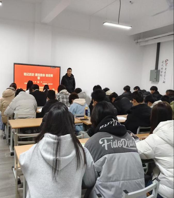 随后,班主任结合历史背景展开讲解,从南京大屠杀的历史事实,到中华民族在苦难中奋起抗争的历程,再到新时代青年的使命担当,层层深入地引导同学们思考“来路为何,使命为何”。在分享交流环节,同学们纷纷发言,有的讲述自己了解到的抗战英雄事迹,并表示既要铭记历史,更要将爱国之情转化为报国之行。