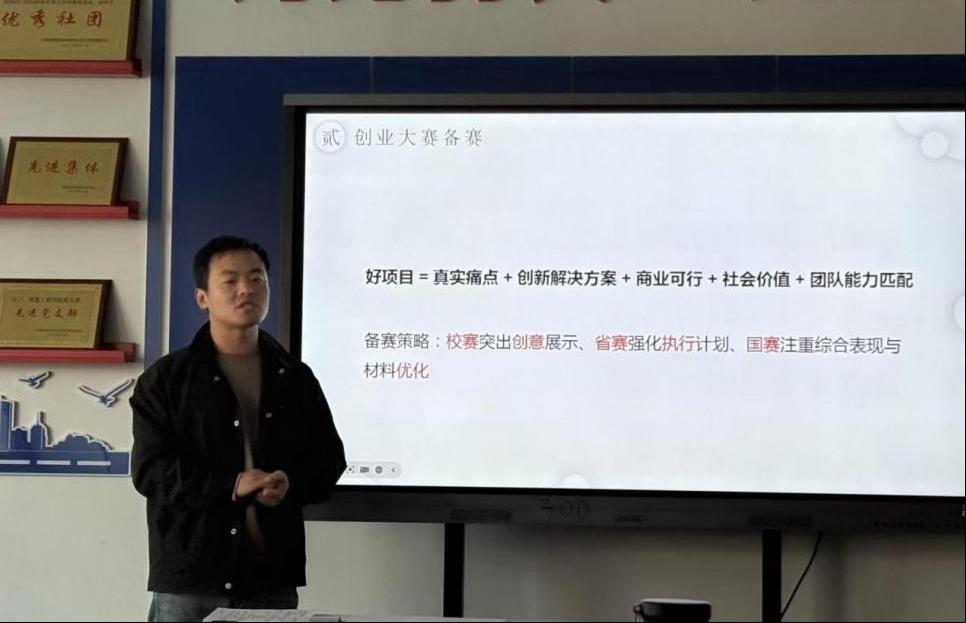 接下来,齐海鹏老师以“创新创业大赛培训”为主题交流经验。他从备赛环节入手,着重讲解“项目筛选”的要点,深入分析“项目申报书及申报材料”的核心要求,并结合往届获奖项目总结其共性优势,为指导学生参与创新创业大赛提供了切实可行的方法与经验。