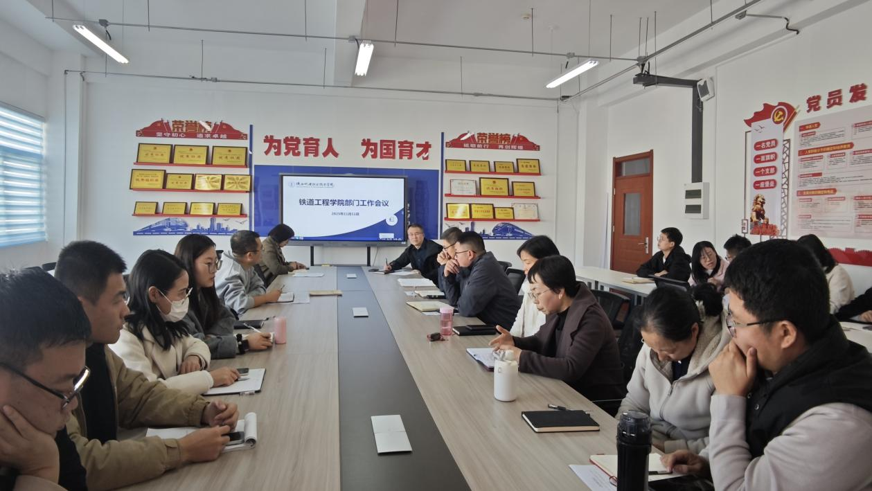 为进一步提升教学质量、落实考勤管理办法、强化校园安全及出入管理,铁道工程学院于11月11日在行知楼南207会议室召开专题部门工作会议。学院全体教师参会,院长卢彦峰主持会议并作工作部署。