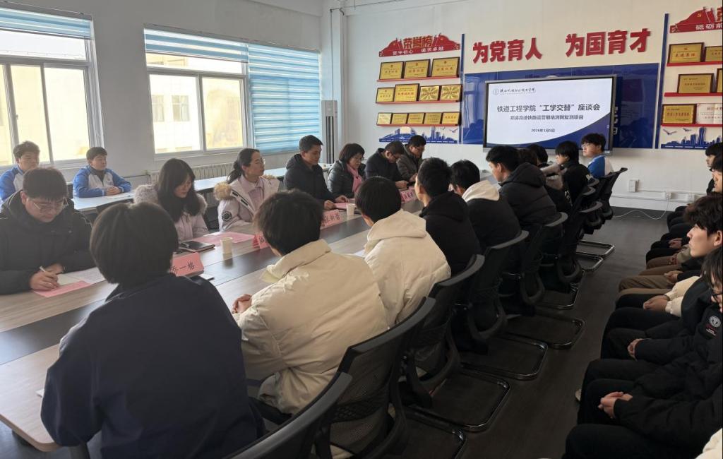 1月5日下午,铁道工程学院“工学交替”座谈会在行知楼南207顺利举行。校党委委员、校长助理赵争东,铁道工程学院党支部书记满春燕,副院长张新蕾及部分教师与工学交替的学生齐聚一堂,共同总结实践成果,表彰先进典型,会议由满春燕主持。
