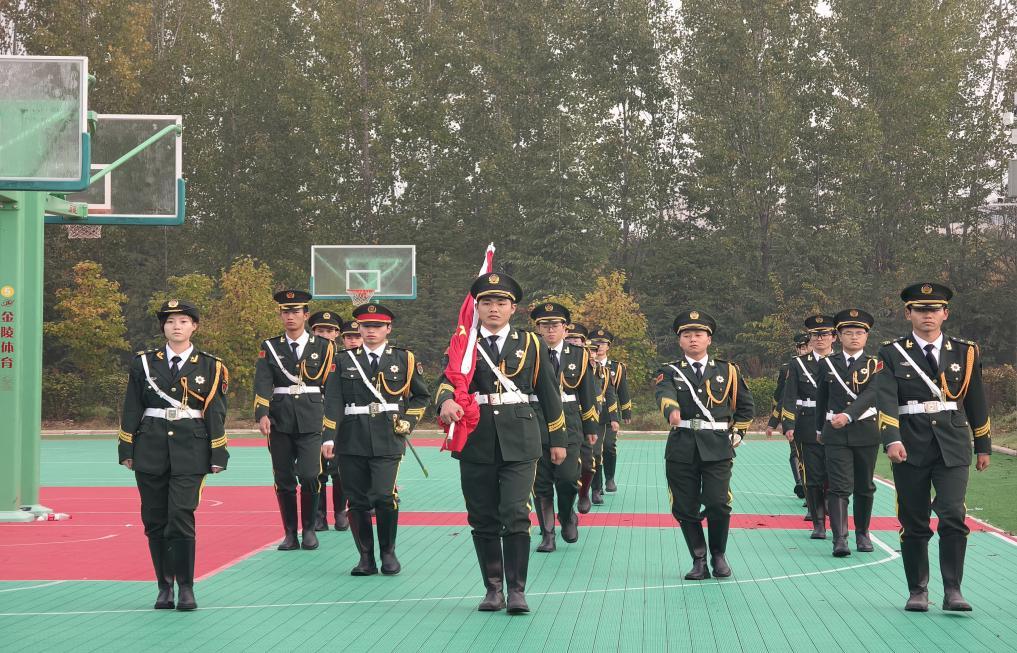 上午7时50分,仪式在庄严的氛围中正式开始。第一项为出旗环节。承担本次任务的擎旗手由24建工管理专业王荣同学担任,护旗手由25铁道工程5班连佳欣同学、25电气技术2班张哲楠同学担任,指挥手则由24机电技术9班杨立同学与25无人机技术2班王杨怡同学共同担当。在激昂的乐曲声中,旗手们步伐铿锵,护卫着国旗行进至国旗台前。