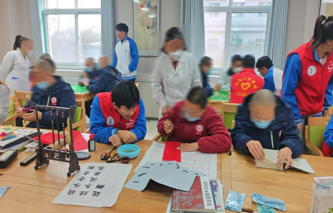 才艺表演结束后,志愿者们分组与老人们进行深入互动。剪纸组的同学与老人一起剪出精美的窗花;书法组的同学陪伴老人挥毫泼墨,感受笔墨丹青的韵味;游戏组的同学则与老人围坐一堂,进行棋牌等小游戏,现场其乐融融;情感陪伴组的志愿者们则静静地坐在老人身边,倾听他们的故事与心声,给予最温暖的情感慰藉。