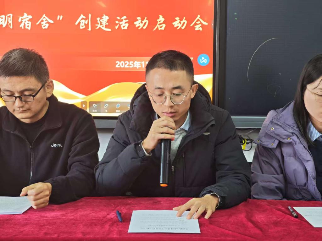 李帅老师进行了活动动员讲话。他就“星级文明宿舍”创建活动提出了三点期望:一是以文化建设立标准,让宿舍有品质更有内涵;二是以协同共治担责任,让宿舍有温情更有力量;三是以作风传承促成长,让文明有活力更有生命力。