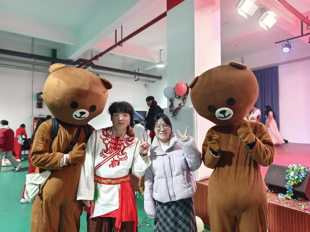 2025年12月30日晚上正值铁道工程学院元旦晚会,“爱的抱抱”活动也走进了学院元旦晚会,身着布朗熊玩偶服的“抱抱使者”与晚会现场的师生们热情互动,帮助在场师生舒缓工作、生活压力,晚会现场氛围热闹非凡。