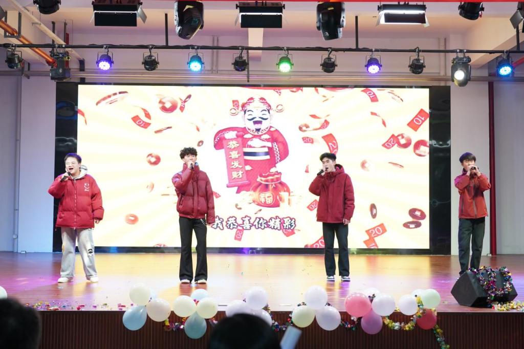 铁道工程学院师生共同组建的乐队率先登场,《我们的时光》《天地龙鳞》《愿爱无忧》《为你唱首歌》等曲目轮番上演,热血的旋律唱响青春韶华,温情的歌声诉说师生情谊;民族舞蹈《最炫民族风》,融合了藏族、维吾尔族、傣族、蒙古族、汉族的独特风情,灵动的舞步、绚丽的服饰,勾勒出民族文化的斑斓画卷,也让观众感受到各民族携手同行的深厚情谊;歌曲《恭喜发财》,带着浓浓的新年祝福,喜庆的旋律让现场暖意融融;打击乐《万马奔腾》,以磅礴的鼓点诠释着民族血脉里的自由与力量,鼓点声声,似万马踏浪而来,尽显铁道学子的豪迈气魄;晚会最后,当全体演员唱响《我爱你中国》,熟悉的旋律瞬间引发全场大合唱,“我爱你中国”的深情告白,是华夏儿女最深沉的眷恋,也是铁道学子对祖国最真挚的祝福。歌声汇聚成一股炽热的情感,在大学生活动中心久久回荡。