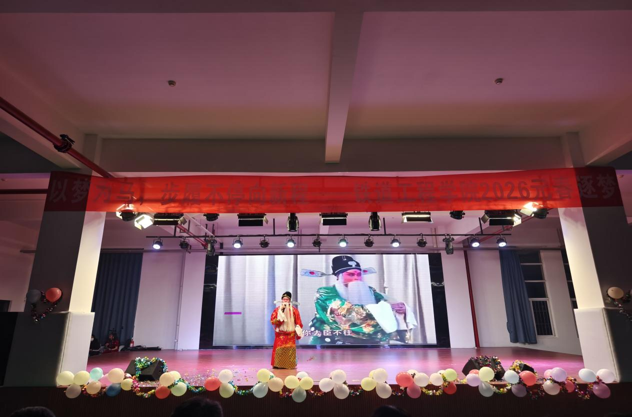 岁序更替,华章日新。2025年12月30日,铁道工程学院再大学生活动中心举办了2026年“以梦为马·逐光而行”元旦晚会,学校党委副书记张琴、学院院长卢彦峰、党支部书记满春燕、副院长李鑫、副院长张新蕾、学生工作办公室主任李帅、教学管理办公室主任阎玉菡出席,铁道工程学院教师、班主任、辅导员及全院学子齐聚一堂,在歌舞声中辞旧岁,于欢笑声里迎新年。