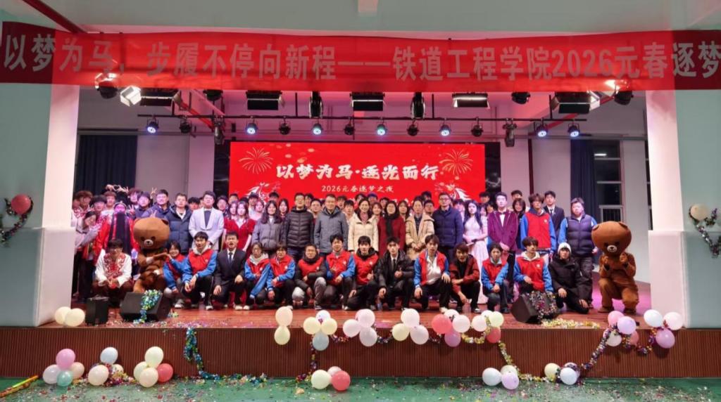 回首过往,那些烽火中的呐喊、绝境里的坚守,早已化作融入血脉的信仰力量,支撑我们以赤诚之心,致敬那段山河无恙、英雄辈出的峥嵘岁月;立足当下,我们以初心为舵,在求知的课堂里深耕不辍,在奋斗的岗位上勇毅争先;展望未来,我们将以担当为翼,奔赴属于新时代的山海远方,让青春的热爱在新征程上闪耀光芒!旧岁已展千重锦,新年再进百尺竿,2026年,铁道工程学院将继续以梦为马、逐光而行,在新的征程上书写更加璀璨的华章!