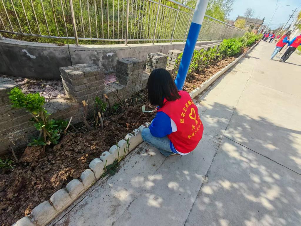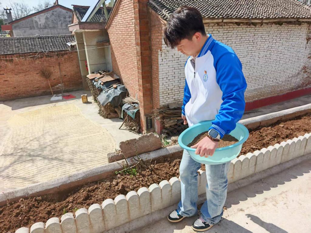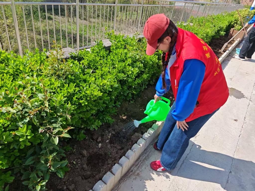 活动现场,志愿者们精神饱满、分工明确,迅速投入到各项实践任务中,分为绿植培育和环境清扫两个小组有序开展工作。在绿植培育区域,同学们在辅导员的指导下,认真学习花卉种植技巧,从松土、播种到浇水,每一个环节都一丝不苟、有条不紊。大家小心翼翼地将花种撒入土壤,浇灌清水,亲手为北社村增添一抹新绿、注入一份生机。躬身劳作的过程中,同学们暂时放下学业压力,在与自然的亲密接触中舒缓身心、调节情绪,在感受生命成长的美好中培养耐心与责任感,既体验了劳动的乐趣,也实现了心理的放松与疗愈,深刻体会“一分耕耘,一分收获”的劳动真谛与心灵滋养的双重意义。