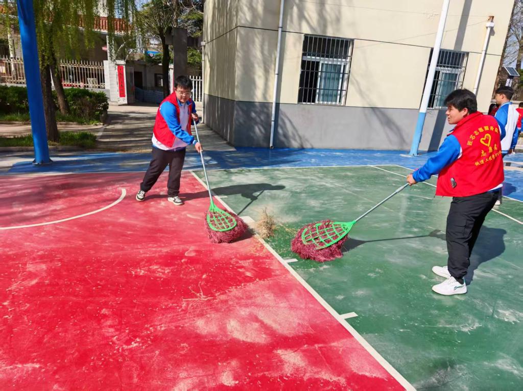 与此同时,环境清扫小组的志愿者们手持扫帚、垃圾夹、垃圾袋等工具,对北社村路面、广场及周边区域进行全面清扫。大家不怕脏、不怕累,弯腰俯身捡拾路面杂物、清理卫生死角,细致清扫广场上的落叶、纸屑和废弃垃圾,有序整理周边堆放物品,默契配合、干劲十足,用双手还原乡村环境的整洁与清爽,用行动诠释“奉献、友爱、互助、进步”的志愿精神,成为乡村里一道亮丽的青春风景线。