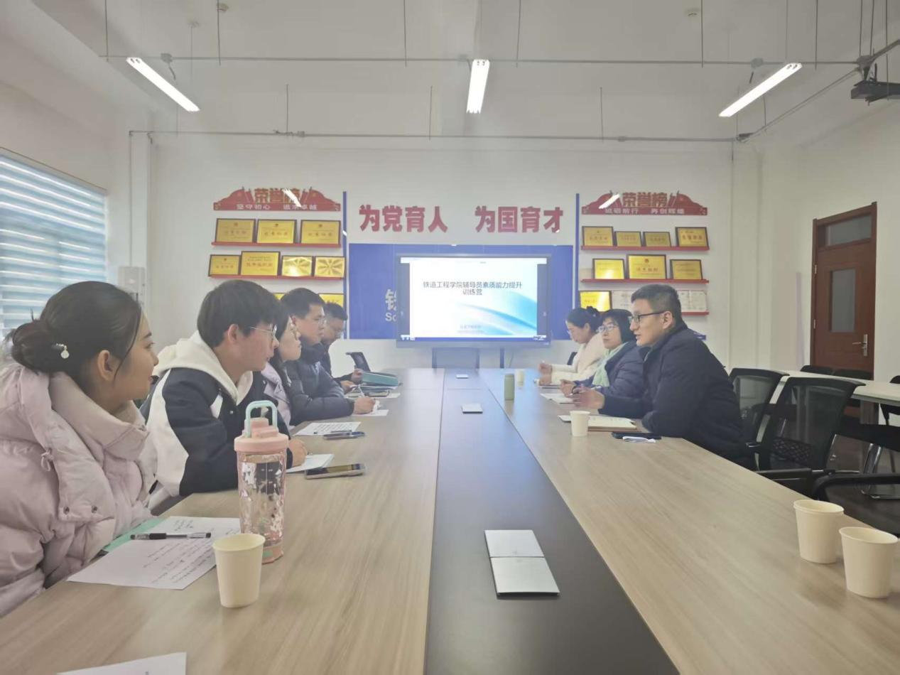 为深入学习贯彻习近平新时代中国特色社会主义思想,落实《全面加强新时代高校辅导员队伍建设行动方案》要求,持续推动辅导员思想政治工作能力提升,赋能辅导员队伍专业化职业化专家化发展。2025年12月22日-12月23日,铁道工程学院在行知楼南207举办了2025年辅导员素质能力提升训练营院赛,铁道工程学院党支部书记满春燕、副院长张新蕾、学生工作办公室主任李帅出席了本次比赛,6名专职辅导员报名参加。