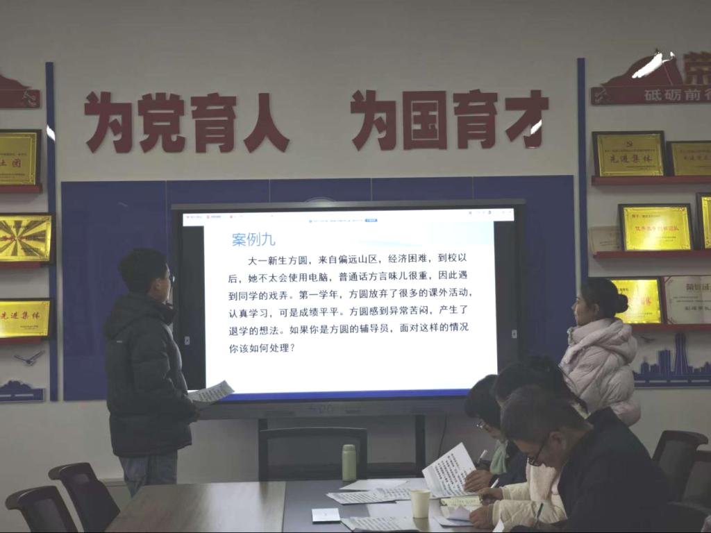 本次比赛设案例评选、案例研讨、谈心谈话等3个环节。其中,案例研讨主要考察辅导员综合运用理论分析问题、研判问题、解决问题、应急处突的能力,过程采用AB角问答模式,辅导员围绕真实学生工作案例展开辨析与策略研讨。