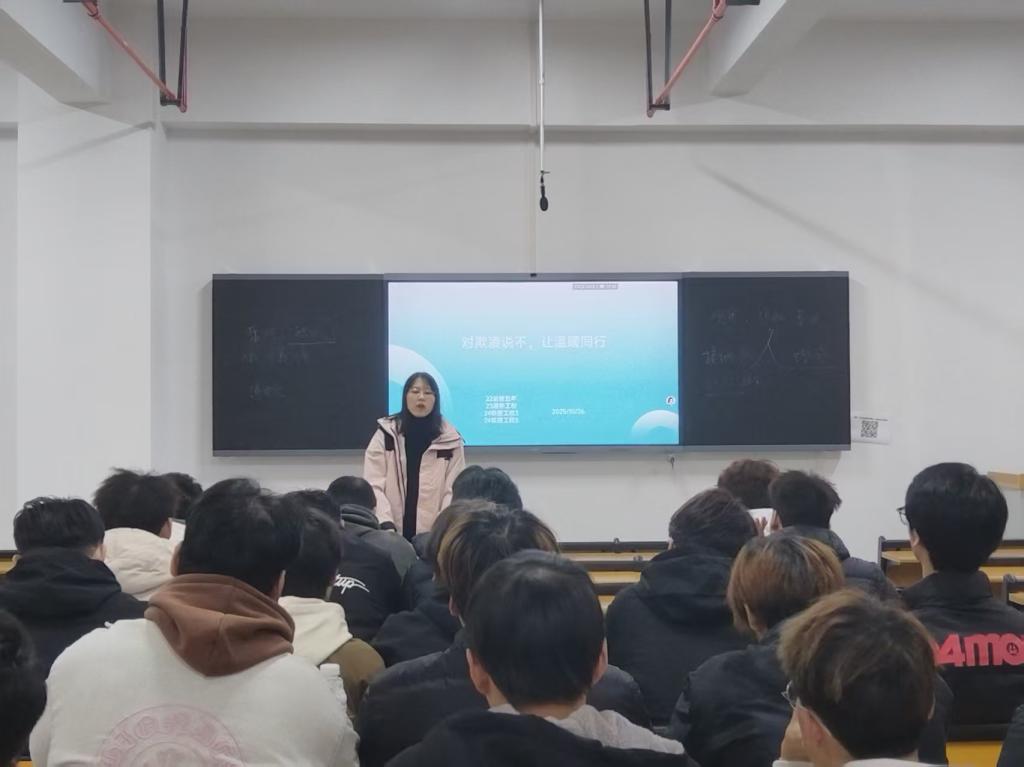 为增强学生的反欺凌意识,营造安全和谐的校园氛围,铁道工程学院于2025年10月26日开展“对欺凌说不,让温暖同行”主题班会活动,全体学生积极参与其中。