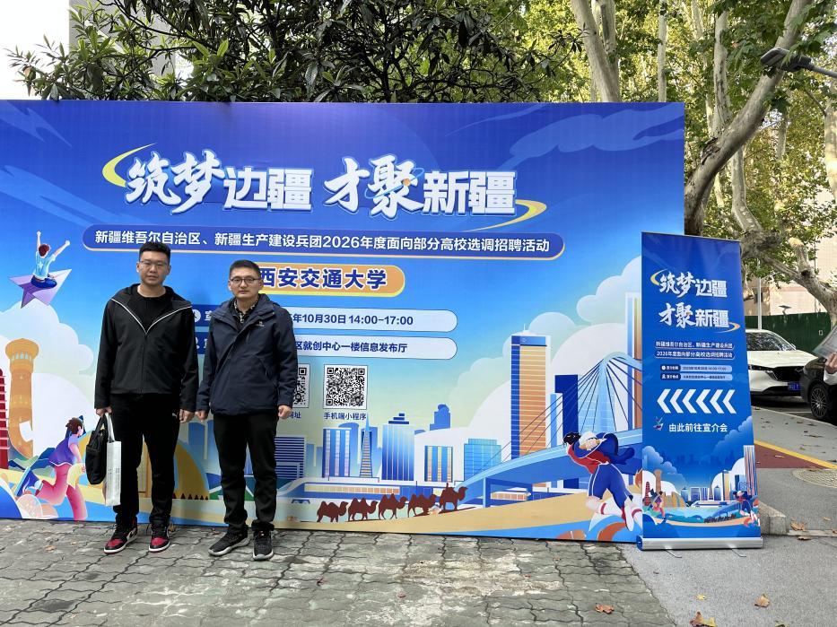 为实现人才精准对接,促进高质量就业。10月30日,铁道工程学院学工办主任李帅、专职辅导员张帅赴西安交通大学兴庆校区,参加四川、新疆组团引才招聘活动。