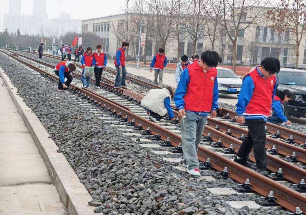 随后,志愿者队伍前往学校北操场、铁道工程学院室外实训基地,重点开展垃圾捡拾与杂物清理工作。大家手持垃圾袋,弯腰捡拾地面上的纸屑、塑料瓶、果皮等垃圾,不放过任何一处卫生盲区,既改善了校园及实训区域的环境卫生,也强化了自身的环保意识。