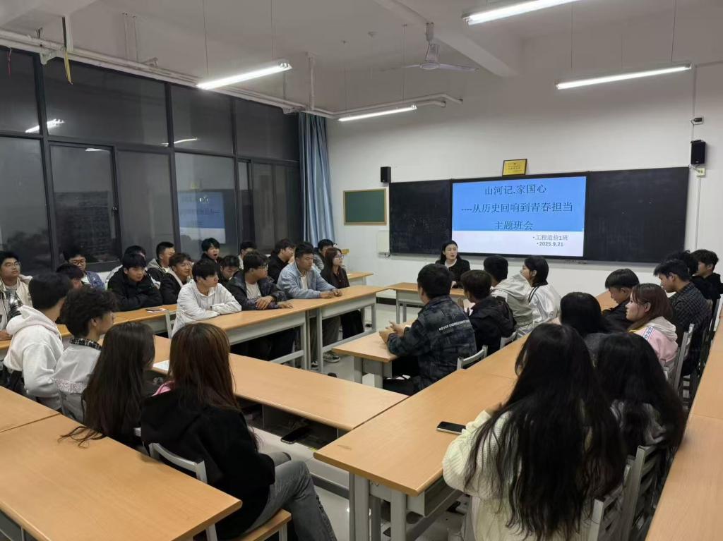 为引导学生铭记历史,感悟家国情怀,激发青年学子的使命感与责任感,让青春担当在新时代的征程中熠熠生辉,2025年9月21日晚,铁道工程学院召开了一场意义非凡的主题班会,班会以“山河记·家国心——从历史回响到青春担当”为主题,吸引了全体同学积极参与。